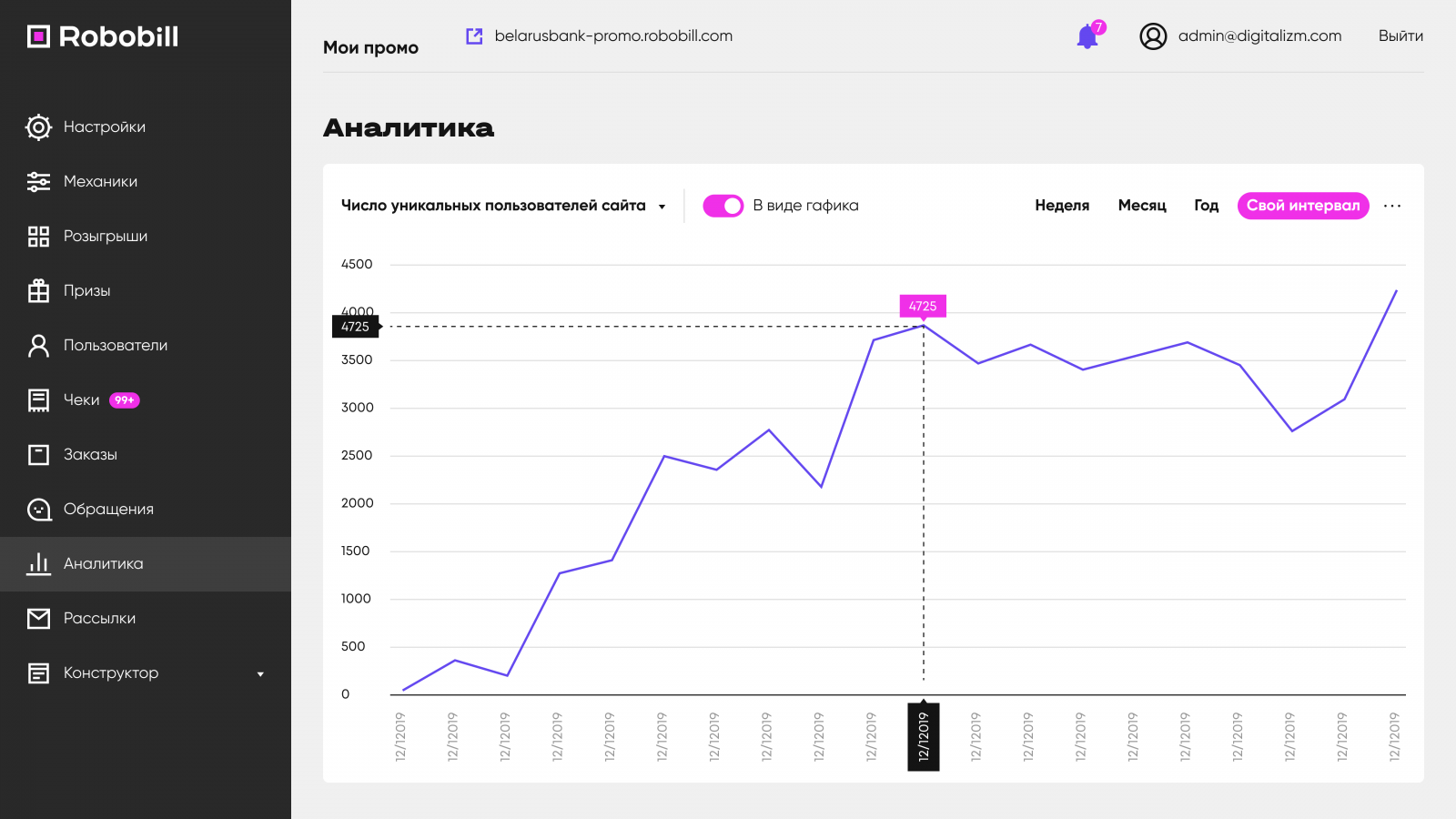 Технология Robobill — no-code и SaaS решение. Это значит, что клиенту не требуется устанавливать дополнительное программное обеспечение, получать удобный современный сервис можно в любой точке страны, а сайт собирается на конструкторе по шаблонам, которые специально для этого разработаны — создать и настроить промоакцию можно без дизайнеров и программистов, самостоятельно.