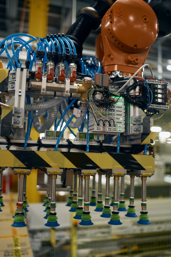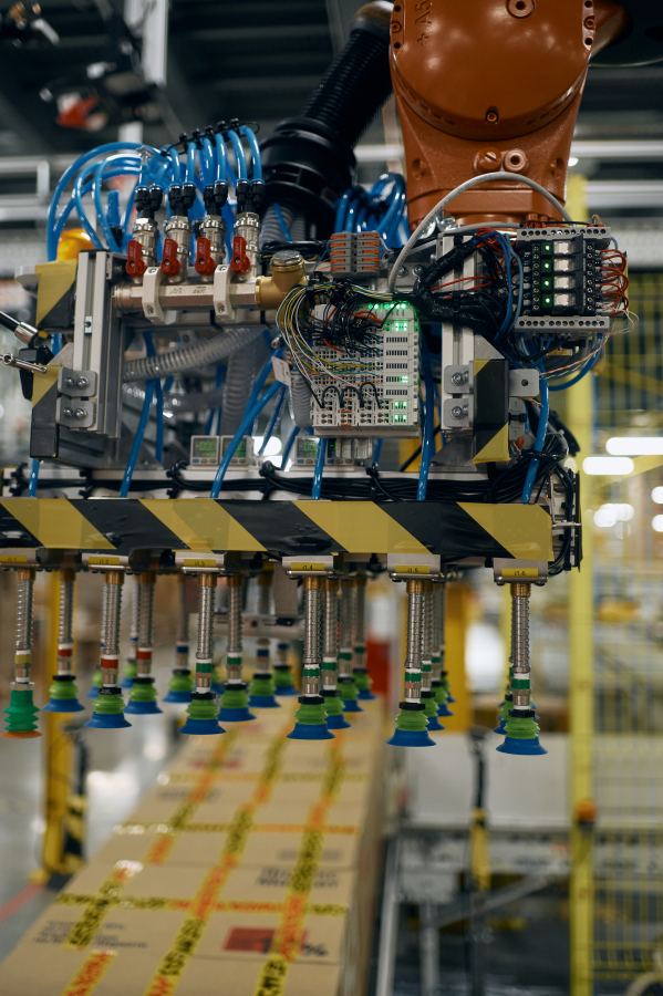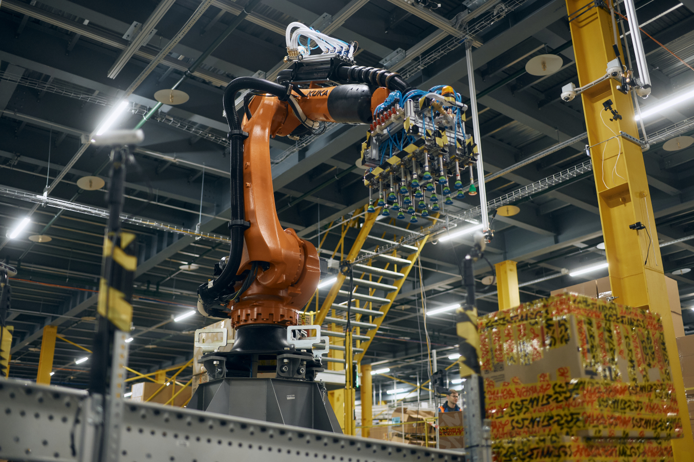 Сейчас на «Cуперскладе» «Роборука» поднимает с конвейера коробки разных размеров, форм, веса и раскладывает на соответствующие палеты и, наоборот, разбирает их. В компании отмечают, что с «нейропомощником» скорость сборки одной палеты в среднем увеличивается в два раза.