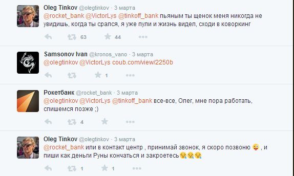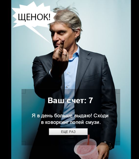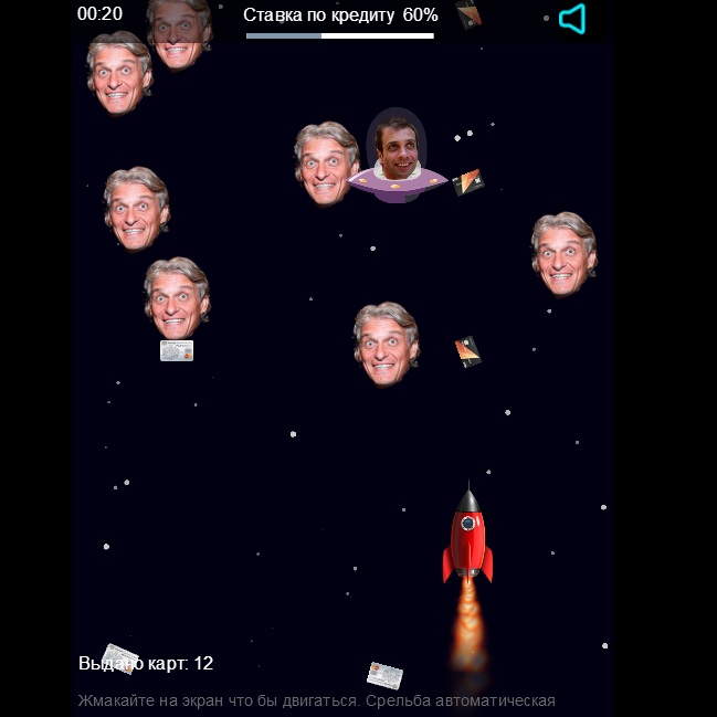 «Рокетбанк» предложил пользователям пострелять в конкурента — Олега Тинькова. Игра появилась после обмена репликами в социальных сетях. Банкир высмеял скромные масштабы бизнеса, а в ответ получил колкости по поводу своего эпатажного поведения. В перепалке участвовал и SMM-отдел «Рокетбанка», и его гендиректор Виктор Лысенко.