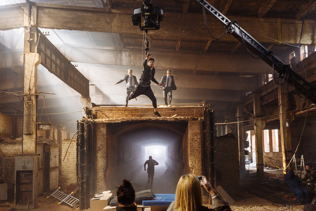Трюки выполнялись в реальности, компьютерная графика почти не использовалась. Интерьер съемочной площадки дополняла искомая заводская пыль. Правда, для создания эффекта запыленности в кадрах, где герой проламывает дощатую стенку, применялись пневмопушки.