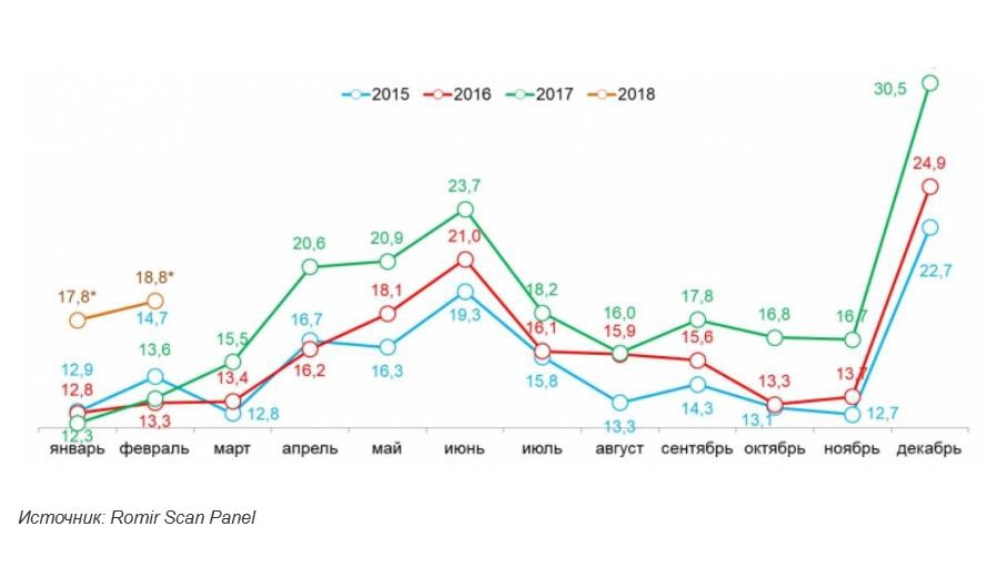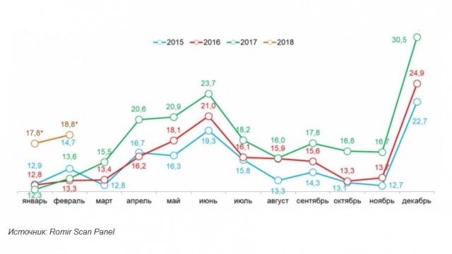 «В январе текущего года размер сводных денег составил 17,8 тысячи рублей, а в феврале — 18,8 тысячи рублей. Таким образом, показатели индекса свободных денег (ИСД) текущего года с лихвой превосходят аналогичные периоды предыдущих лет. Ближе всего по значениям, хотя и все равно с большим отрывом, оказались показатели 2015 года, когда объем свободных денег в январе достигал уровня 12,9 тысячи, а в феврале — 14,7 тысячи», — отмечается в исследовании.