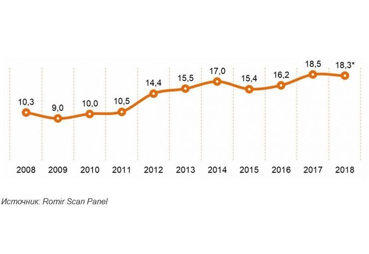 Объем «свободных денег» у россиян в 2017 году достиг максимума с 2008 года и составил 18,5 тысячи рублей в среднем на человека в месяц, говорится в исследовании, подготовленном холдингом «Ромир».