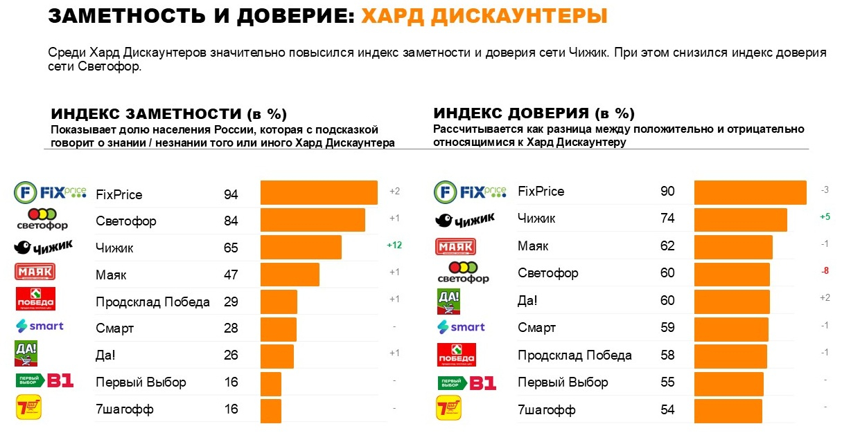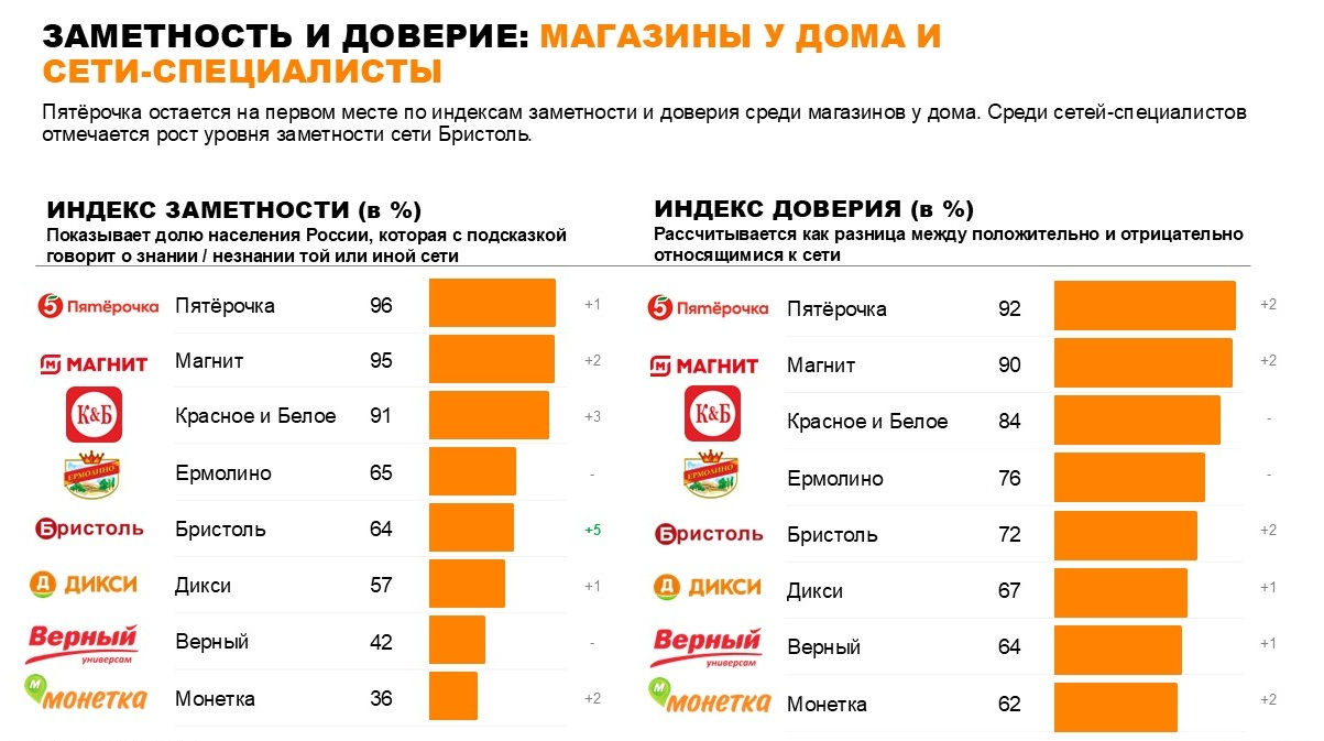 Исследовательская компания РОМИР представила свежий обзор российского ретейл-рынка, в котором выделены ключевые игроки и потребительские ориентиры в офлайн- и онлайн-сегментах. Среди сетей традиционного формата уверенное лидерство сохраняет «Пятёрочка» — бренд показывает максимальные показатели узнаваемости и доверия со стороны покупателей, что укрепляет его позиции на рынке. Вторую и третью строчки занимают «Магнит» и FixPrice — их стабильное присутствие в повседневных маршрутах потребителей подтверждает устойчивое положение в розничной структуре. Также в топ-5 вошли сети «Красное&Белое» и «Лента», которые продолжают пользоваться высоким уровнем популярности среди россиян.