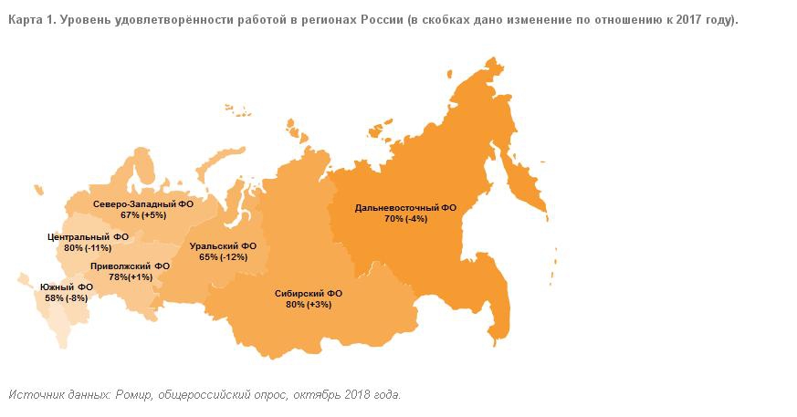 Больше всего любят то, чем занимаются, жители центральной части страны и Сибири. Меньше других своей работой довольны жители Южного и Уральского федеральных округов.