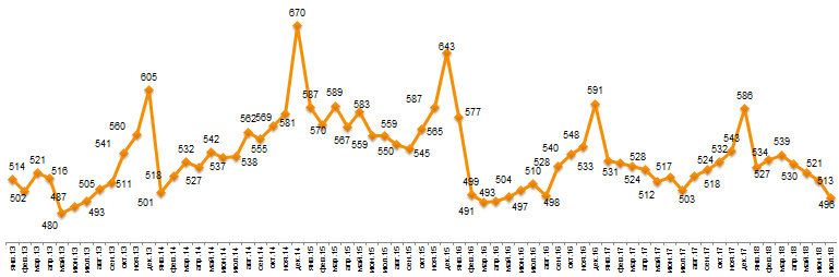 По сравнению со значением прошлого года показатель снизился на 1,4% или на 7 рублей. Эксперты отмечают, что таким маленьким средний чек не был уже более 2 лет — с марта 2016 года.