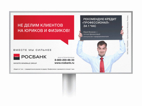Именно эту концепцию и продвигает «Росбанк» с помощью рекламной кампании, центральным персонажем которой стал Юрий Физиков. Появление обаятельного профессионала поможет сделать продукт более понятным и дружелюбным для целевой аудитории, а коммуникацию банка с клиентами более доверительной и удобной, считают авторы проекта.