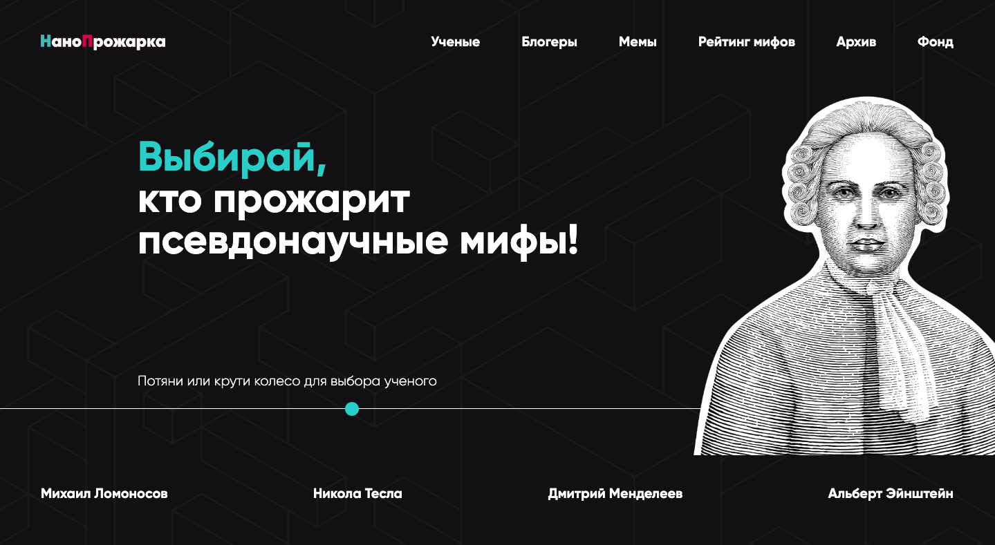 Интерактивной частью проекта стал раздел, в котором известные новаторы своего времени — ученые Альберт Эйнштейн, Никола Тесла, Дмитрий Менделеев и Михаил Ломоносов — обрели голоса и помогли блогерам «прожарить» 12 популярных наномифов.
