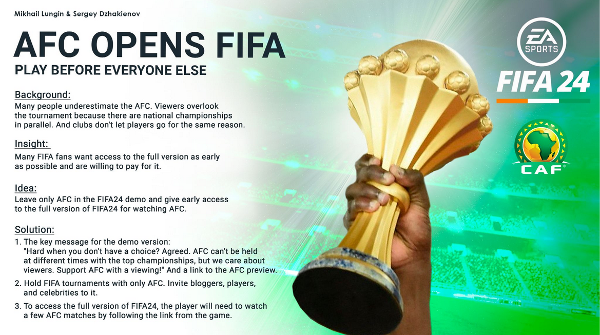 Вторую золотую медаль ребятам дали за проект «Кубок Африки по футболу открывает FIFA». Задача заключалась в том, чтобы сделать кубок Африки-2023 самым популярным африканским турниром в истории.