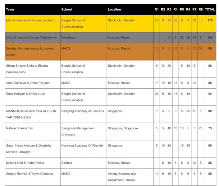 Фестиваль ежегодно длится восемь месяцев и состоит из восьми раундов. Новый раунд — новый бриф для участников от организаторов. Каждый проект получал индивидуальную оценку жюри. Так, эксперты высоко оценили некоторые работы студентов Wordshop — за все время участия ребята получили два золота, одно серебро и четыре бронзы.