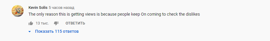«Единственная причина, по которой это продолжает получать просмотры — это люди, которые заходят проверить количество дизлайков».