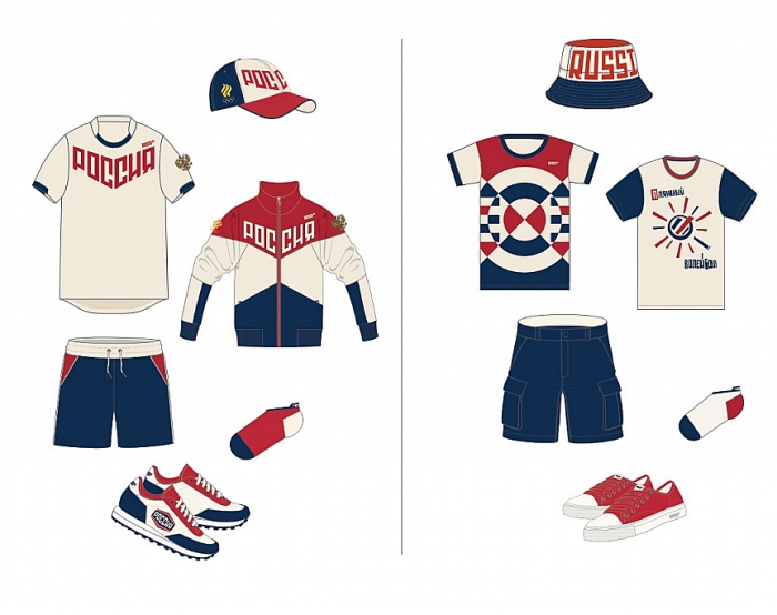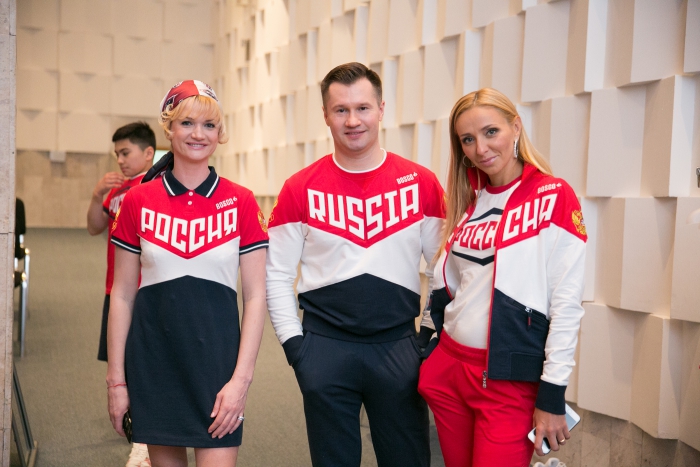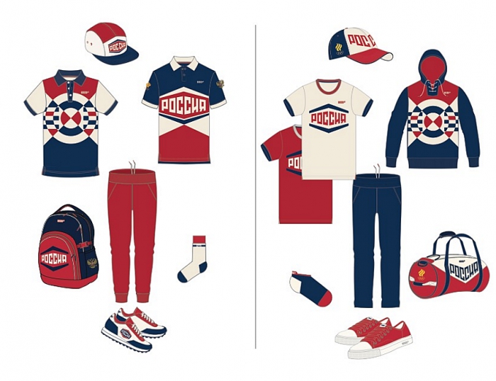Место проведения церемонии было выбрано не случайно, создателей формы вдохновили работы художников русского авангарда начала ХХ века. В основу оформления экипировки легли работы авангардистов Казимира Малевича, Василия Кандинского и других. Дизайн формы лаконичен и выполнен в цветах российского флага.