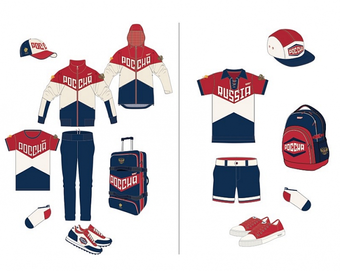 Каждый комплект экипировки, получившей название «Русский авангард», состоит из 48 предметов, в него входят как парадный костюм, так и футболки, майки, обувь и различные аксессуары. Для спортсменов предусмотрено 26 размеров одежды, из которых 14 мужских и 12 женских. Самый маленький рассчитан на гимнасток — рост от 135 см, а самый большой — на волейболистов, рост до 220 см. Нынешний комплект станет самым большим по количеству предметов за всю историю олимпийских команд России и СССР.