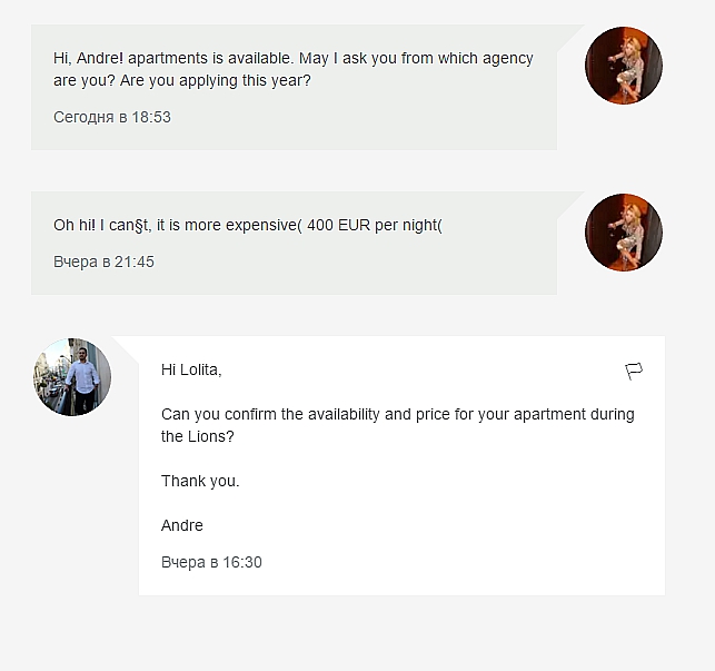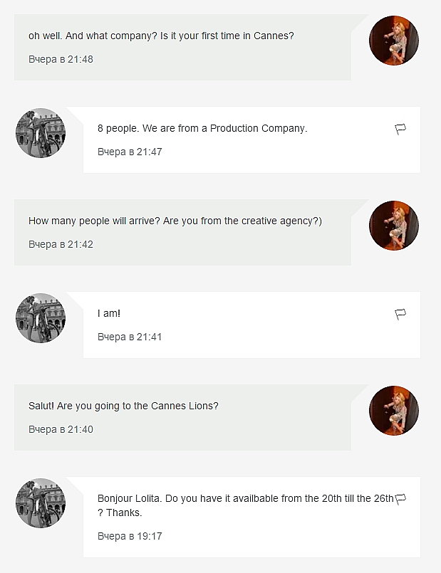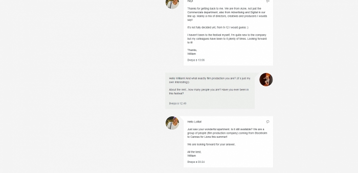 Агентство создало аккаунт (сейчас он заблокирован) за несколько месяцев до фестиваля - именно в то время, когда участники и гости «Каннских львов» начали искать жилье. На странице квартиры было указано, что она находится в самом центре Канн, в ней пять спален, джакузи, вид на море и шикарный интерьер.