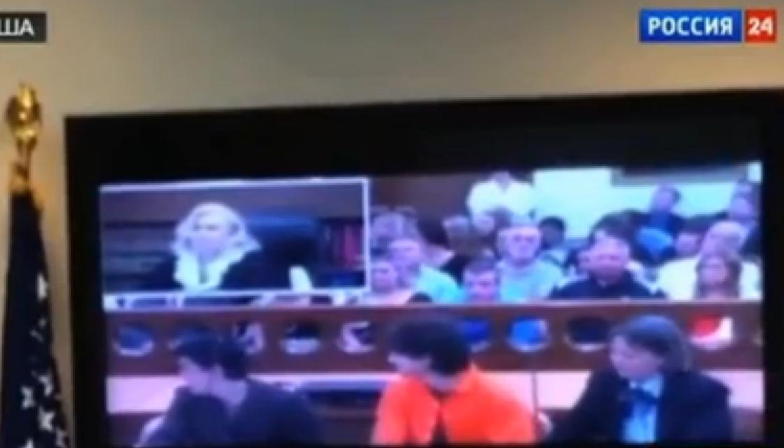 Журналист сообщил, что «наблюдать за появлением подсудимого можно было по специальной видеотрансляции». Несколько секунд в сюжете демонстрировались картинка с мониторов внутри здания John Joseph Moakley US Courthouse.