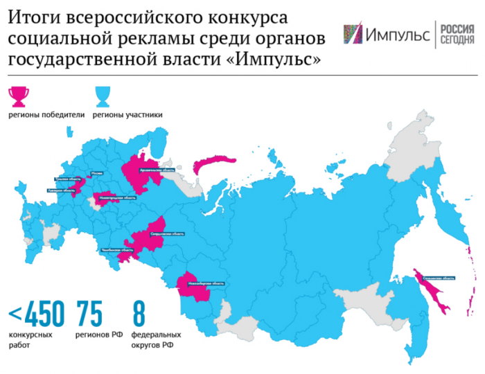 Церемония награждения прошла в международном пресс-центре МИА "Россия сегодня". Участие в мероприятии приняли члены жюри, руководители и представители федеральных и региональных органов государственной власти, рекламное сообщество и СМИ. Победители конкурса получили памятные статуэтки «Импульс», которые символизируют социальную энергию, дающую новый толчок к созиданию и устойчивому развитию.
