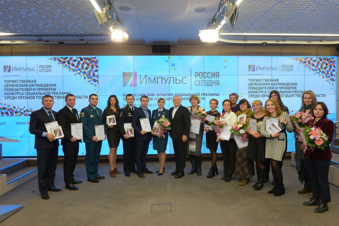 Оргкомитет всероссийского конкурса государственной социальной рекламы «Импульс», организатором которого выступает МИА «Россия сегодня», объявил победителей и призеров конкурса. Торжественная церемония награждения лауреатов конкурса состоялась в международном пресс-центре МИА "Россия сегодня".