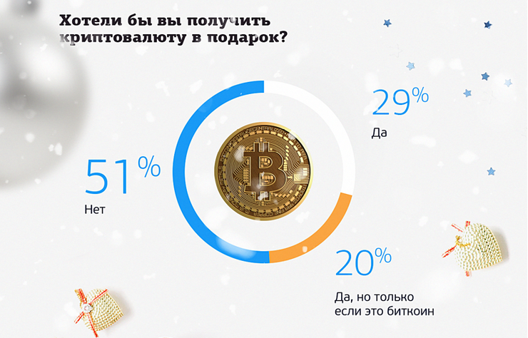 В опросе приняли участие 21 тыс. респондентов, 49% из которых не отказались бы от криптовалюты в качестве подарка, а 51% предпочли бы получить другой подарок.