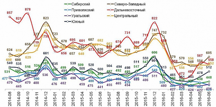 Размер чека уже пять месяцев подряд остается беспрецедентно низким, на уровне трех-четырехлетней давности. Так, по сравнению с июнем прошлого года средний чек потерял 55 рублей или почти 10% своей стоимости. С учетом накопленной за период инфляции в 7,5%, за год чек потерял почти шестую свою часть.