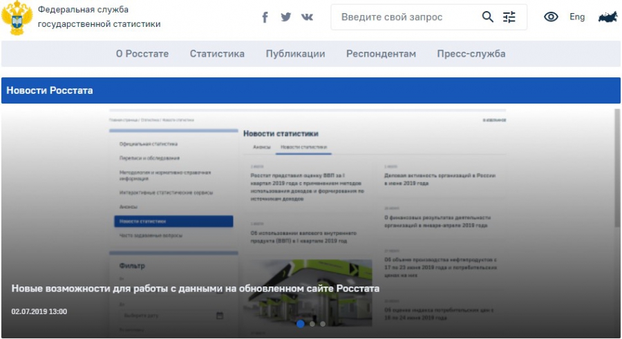 У нас в этом году юбилей. Действующий портал Росстата был запущен ровно 20 лет назад — в 1999 году. Можно сказать, на заре, когда только создавались Google и «Яндекс», но Google и «Яндекс» с тех пор прошли большую эволюцию, а мы, к сожалению, работаем все на той же самой платформе