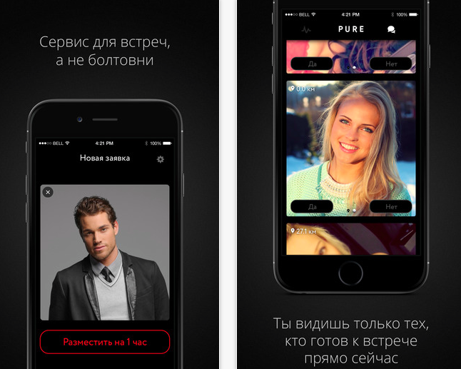 Приложение создано для быстрых секс-знакомств. Pure позволяет найти партнера для срочного секса.
