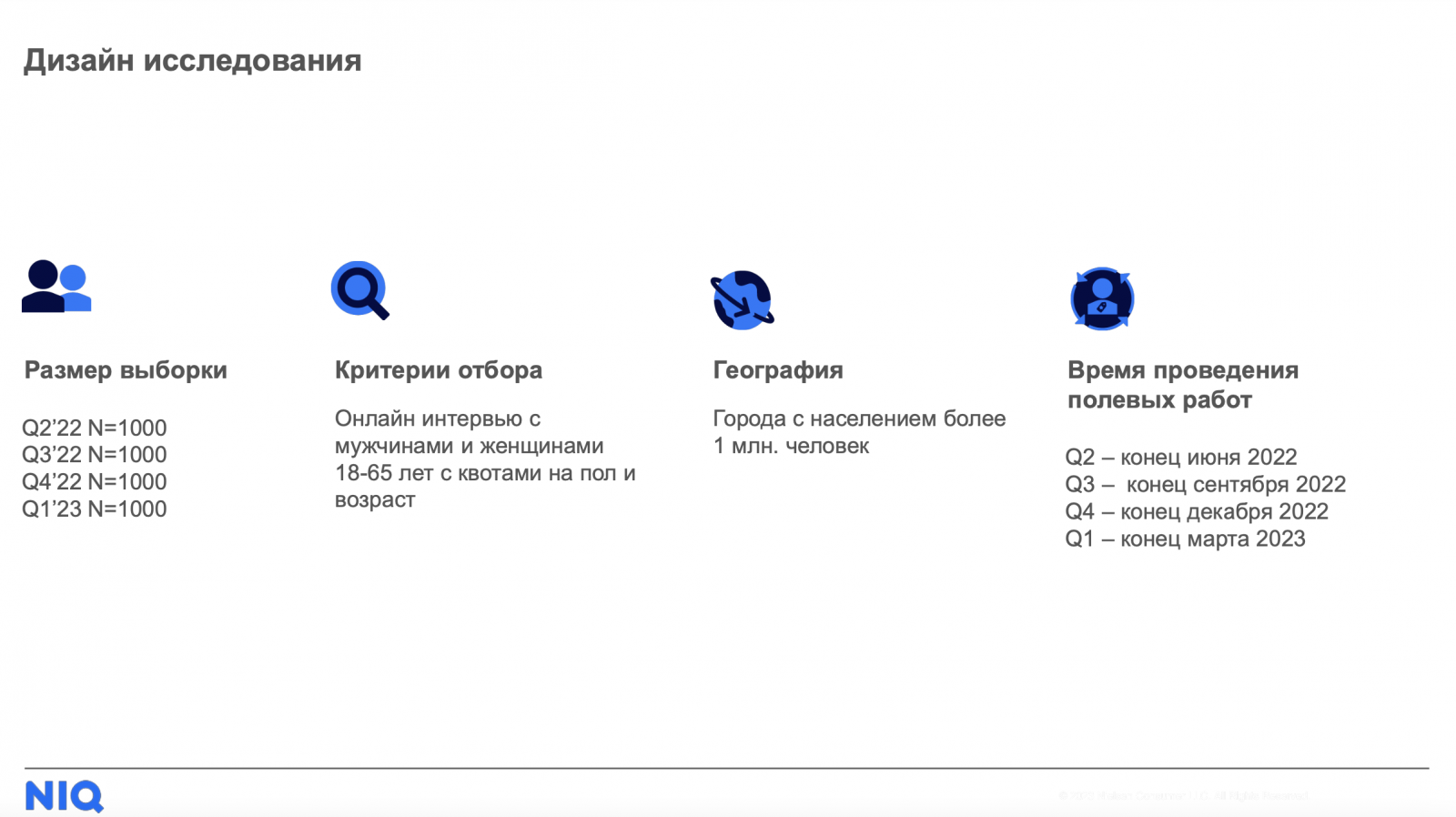 По мнению экспертов NielsenIQ, несмотря на то, что в текущих условиях ключевым трендом остаётся экономия, потребители настроены оптимистично и в долгосрочной перспективе планируют тратить чуть больше средств при улучшении экономической ситуации, чем в прошлом квартале.