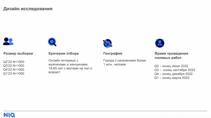 Согласно данным исследования, в первом квартале 2023 года значение индекса потребительского оптимизма, измеряемого NielsenIQ, выросло до 104 пунктов (рост на 4 п.п.) по сравнению с прошлым кварталом. Значение индекса может варьироваться по шкале в 200 пунктов, а значения выше 100 пунктов свидетельствуют о том, что среди потребителей преобладают оптимистичные настроения с точки зрения личного материального положения, рабочих перспектив и готовности тратить деньги.