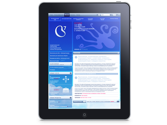 Для облачного бренда в BrandLab также разработали дизайн портала (www.o7.com), презентационные материалы и оформление основных сервисов – «O7. Медицина», «O7. Образование», «O7. ЖКХ», «O7. Сити», «О7. Бизнес» и другие.