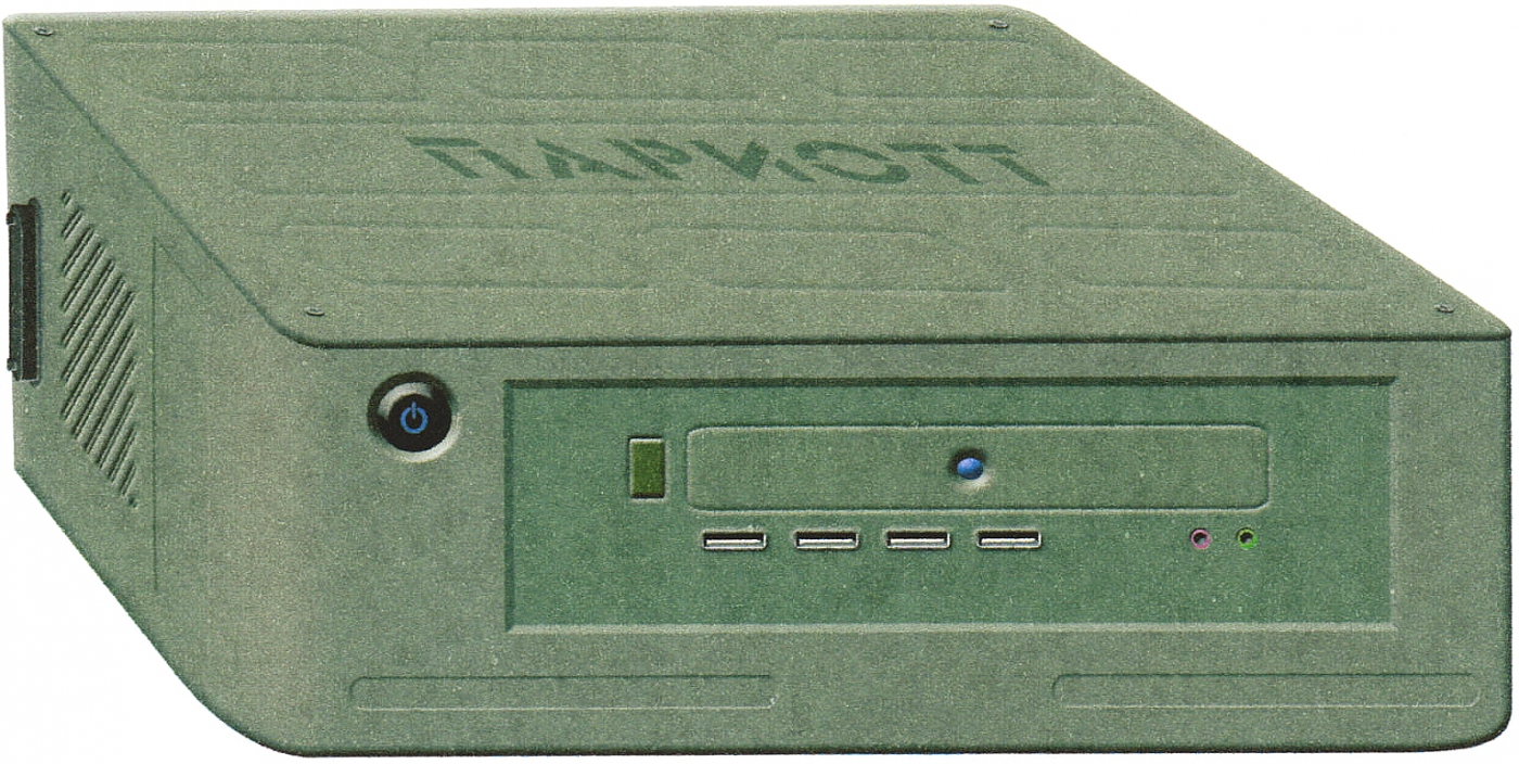 «Моя идея — предложить устройство, которое могло бы конкурировать с игровыми компьютерами известных брендов. Дизайн планшета-ноутбука выполнен в военном стиле, как раз для любителей компьютерных игр, типа Call of Duty или Warface. Монитор имеет ручку для переноски. На самом системном блоке я вывел переходник под кабель-usb, сам блок имеет подставку. Предусмотрено три варианта начинки системного блока», — говорит Джобс.