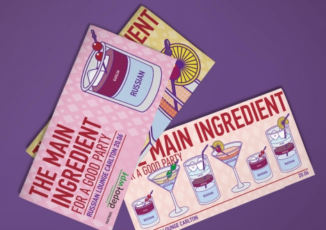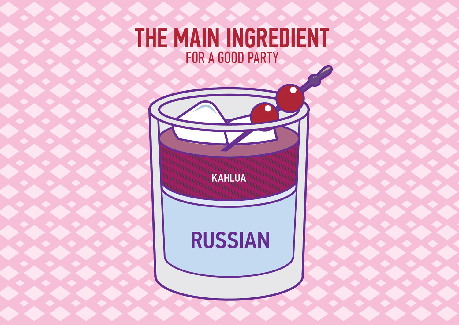 Креативную концепцию для вечеринки разработало брендинговое агентство Depot WPF. В ее основе лежит идея о том, что вечеринка – это коктейль, у которого обязательно должен быть главный ингредиент. У по-настоящему веселой и запоминающейся вечеринки этим главным ингредиентом являются русские!