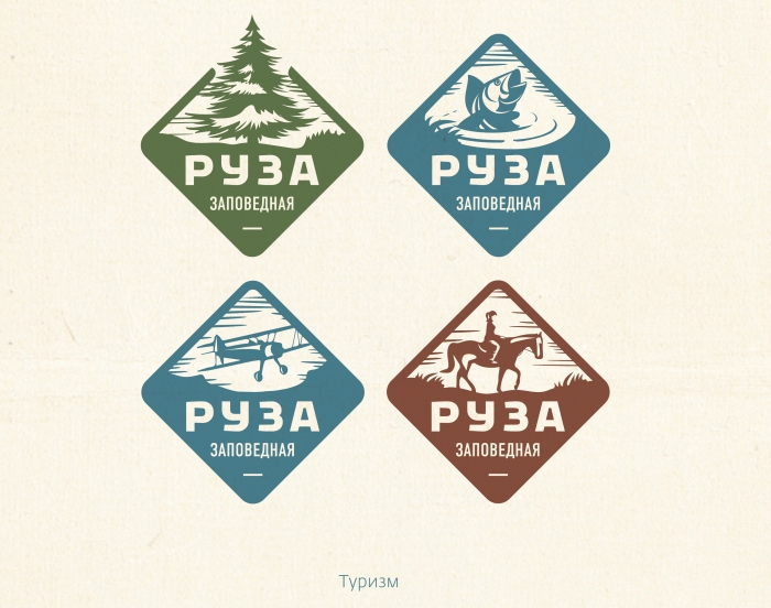 Цветовое решение логотипа «Руза заповедная» выражено в трех фирменных цветах: коричневый, зеленый, синий - что символизирует плодородную землю, зеленые просторы лесов, чистоту водоемов и кристальность воздуха.