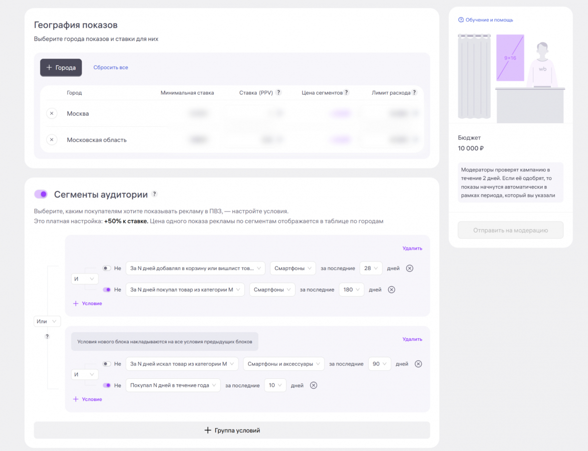 Новый функционал позволит показывать рекламные ролики посетителям ПВЗ, которые ранее интересовались товарами определенной категории: искали, добавляли в корзину, избранное или совершали покупки. Рекламодатели также могут задать временной интервал, в течение которого происходили эти действия, и исключать тех, кто уже оформил заказ.