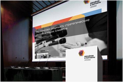 Яркая палитра логотипа и системы дизайна бренда «Михайлов и Партнеры» уравновешена сдержанным черно-белым фотостилем, унаследованным от предыдущего фирменного стиля компании. Ребрендинг – часть стратегии «Михайлов и Партнеры», принятой в 2011 году и нацеленной на дальнейшее развитие российской и международной экспертизы компании в области стратегических коммуникаций.