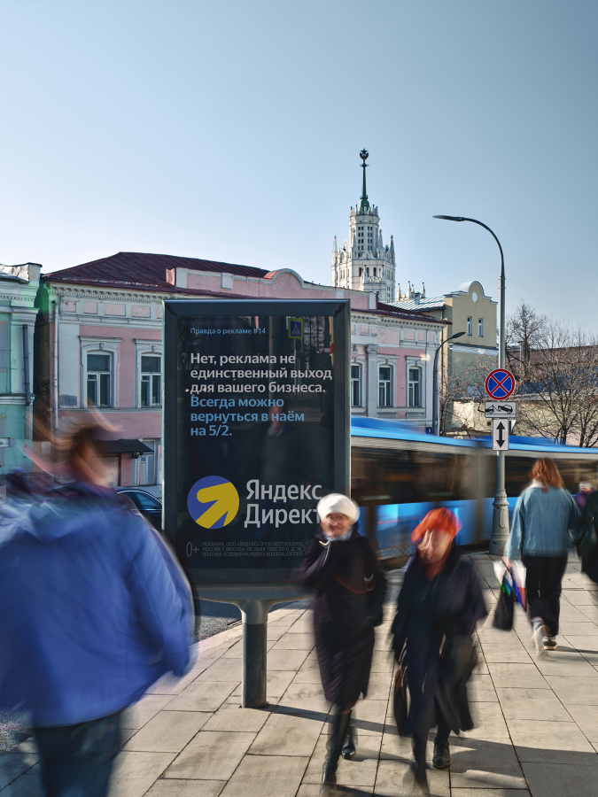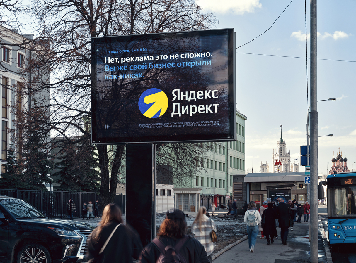 «Яндекс Реклама» запустила кампанию, в которой прямо и без купюр обратилась к представителям малого и среднего бизнеса. На медиафасадах в 25 городах появились сообщения, призванные донести два простых тезиса: систематическое продвижение необходимо любой компании, а запустить рекламу можно самостоятельно и без специальных навыков.