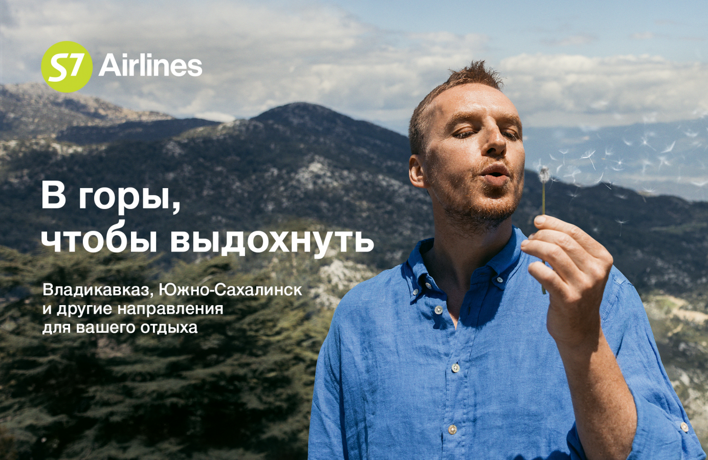 Новая рекламная кампания S7 Airlines представлена на федеральном ТВ, радио, билбордах в Москве, Новосибирске и Сочи, в диджитал-формате, а также в вагонах московских аэроэкспрессов и на рейсах S7 Airlines.
