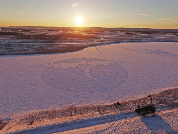 Авиакомпания S7 Airlines продолжает проект #ХОЧУТУДАГДЕ новым арт-проектом художника по снегу. Совместно с кинокомпанией Bazelevs перевозчик привез в Якутию Саймона Бека, основателя направления сноу-арт - рисования гигантских изображений на снегу. Для открывающей сцены нового фильма кинокомпании Bazelevs «Он – дракон» Бек нарисовал на снежном поле огромного дракона диаметром 130 метров.