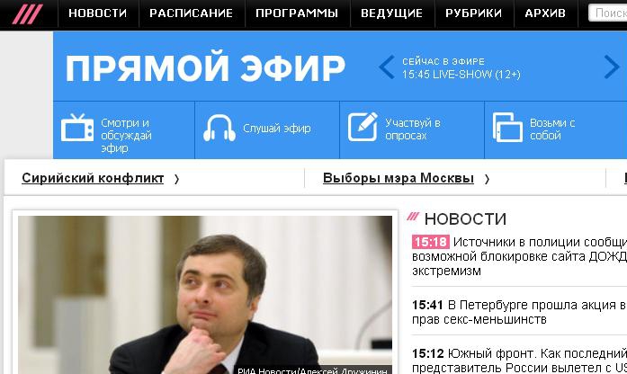 Как сообщает «Лента.ru», на сайте «Дождя» обнаружили материал, возбуждающий ненависть либо вражду, а также унижение человеческого достоинства. Какой именно материал вызвал недовольство полиции, не уточняется.