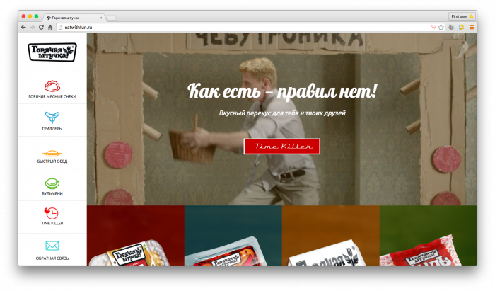 Умный сайт меняет свой облик в зависимости от сегмента привлекаемой аудитории. Принцип персонального сообщения реализуется следующим образом: если пользователь - любитель футбола, то «Горячая штучка» напомнит ему, что это идеальный перекус во время тайм-аута, а если заядлый геймер, и Fallout и GTA для него - не пустые звуки, то бренд научит посетителя сайта побеждать голод, не отвлекаясь от игры.