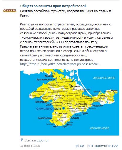 Поводом для принятия жестких мер стала «Памятка для российских туристов, направляющихся на отдых в Крым». В ней разъяснялись правовые аспекты, связанные с посещением полуострова, приобретением туристических продуктов, недвижимости и услуг. ОЗПП напоминало, что по нормам международного права территории Крыма и Севастополя являются оккупированными. В связи с этим организация предупреждает российских потребителей об определенных рисках.