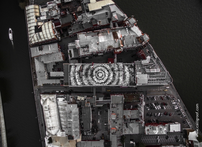 Новое художественное произведение известного каллиграфа Покраса Лампаса площадью более полутора тысяч квадратных метров создано в самом центре Москвы на крыше завода Красный Октябрь. Для создания работы художник и его команда использовали почти тонну краски, а получившееся изображение по высоте сопоставимо с высотой двадцати двухэтажного дома.