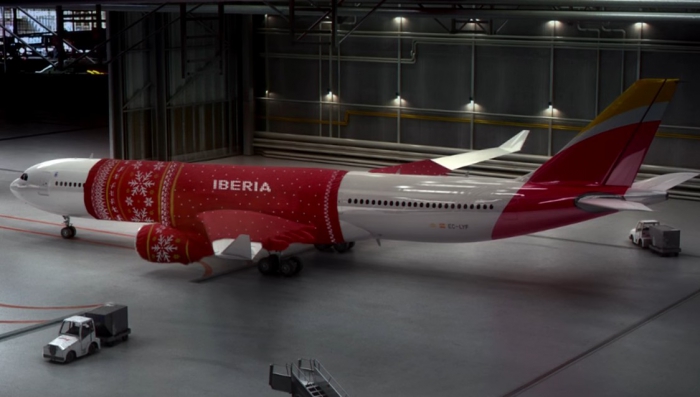 Национальный и крупнейший авиаперевозчик Испании Iberia решил необычным образом поздравить своих пассажиров с наступающими праздниками. Авиакомпания облачила один из своих самолетов в рождественский свитер.