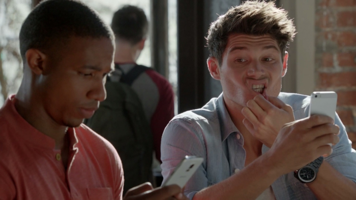 По сюжету два приятеля встречаются с разницей в несколько лет. Сначала любитель iPhone сообщает, что Apple сделает экран смарфтона больше. Однако время проходит, выходит Samsung Galaxy S5 с 5,1-дюймовым дисплеем, а «яблочник» все еще читает новость о выпуске «большого» iPhone и завидует другу.