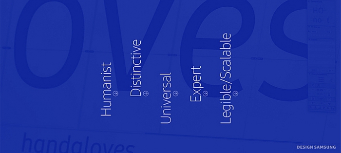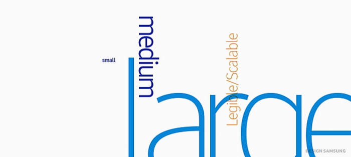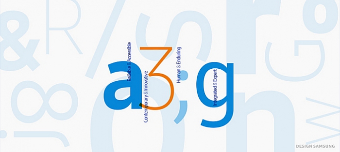 Как заявляют в компании, фирменный шрифт находится в самом сердце ДНК нового визуального языка. SamsungOne — солидный, жизнеутверждающий и четкий, выполнен в теплых тонах. Он прекрасно смотрится и в большом, и в малом масштабе. Над созданием шрифта трудился известный типограф Нэвилл Броди.
