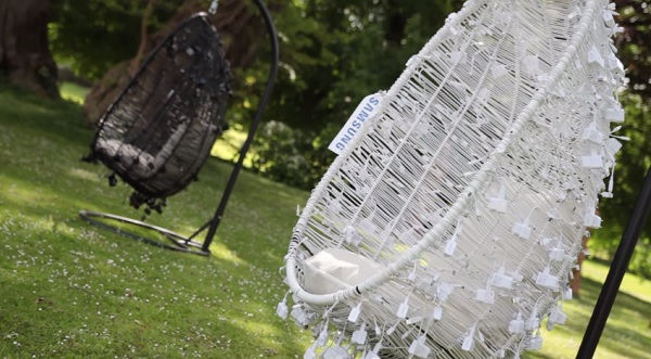 Компания Samsung запустила необычный проект для продвижения своего нового флагманского гаджета Galaxy S6, одной из особенностей которого является наличие функции беспроводной зарядки. Из ненужных теперь проводов зарядных устройств авторы проекта сплели гамаки и кресла, после чего установили их в парках и скверах.