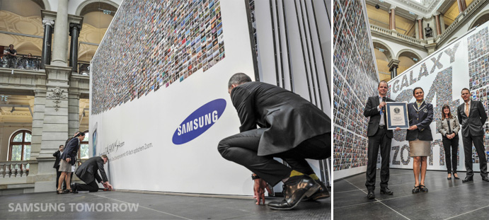 За время кампании Samsung удалось собрать более 36 тысяч фотографий. В конечном итоге в фотоальбом, состоящий из 16 страниц, размер каждой из которых составляет 5 на 8 метров, попали лишь 28 тысяч изображений.