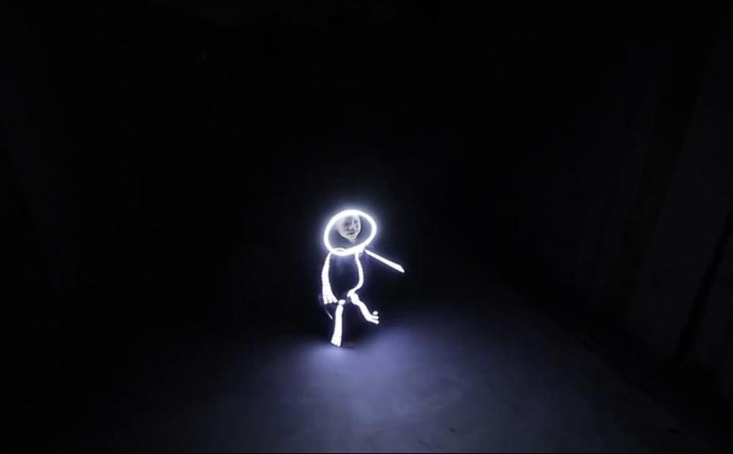 На видео - ребёнок, одетый в светодиодный костюм, находящийся при этом в полной темноте. По словам "изобретателя" костюма, его дочери очень понравился необычный наряд, и она часто его одевает.