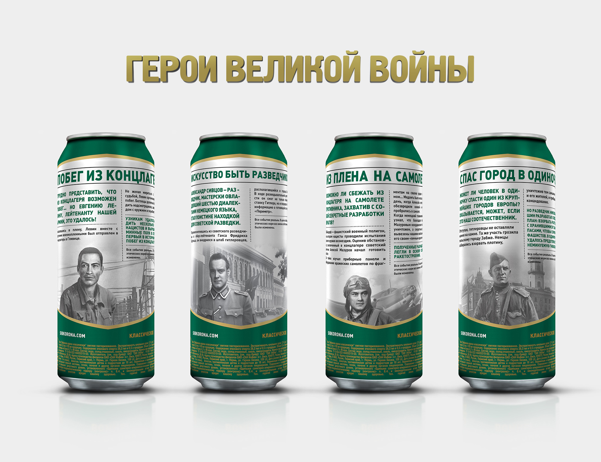 В «САН ИнБев» пояснили, что выпустили специальную коллекционную серию «Герои великой войны» с рассказами о подвигах советских солдат, чтобы напомнить современникам о драматичных страницах истории нашей страны. В оформлении были использованы фантазийные изображения, а все имена собственные в рассказах – изменены.
