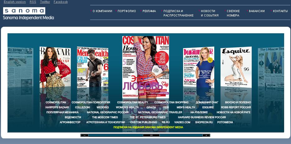 Ключевой бизнес Sanoma Media (журналы, ТВ, радио, онлайн-активы) также продемонстрировал негативную динамику: минус 4,2% по итогам октября–декабря и минус 6,5% по итогам года. Квартальная выручка подразделения Russia & CEE (Россия, Центральная и Восточная Европа) сократилась более чем на 15%, годовые продажи – на 13%, до 173,5 млн евро. Печатная реклама в данном регионе потеряла 18% в 2013 году, интернет показал нулевой прирост, в сегменте ТВ и радио наблюдался рост в 4%.