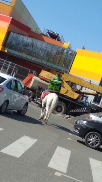 Как выяснил Tjournal, молодого человека зовут Алексей Савельев. Раньше он работал инструктором по верховой езде. Конь принадлежит ему. Молодой человек взял его с собой на работу уже на второй день.