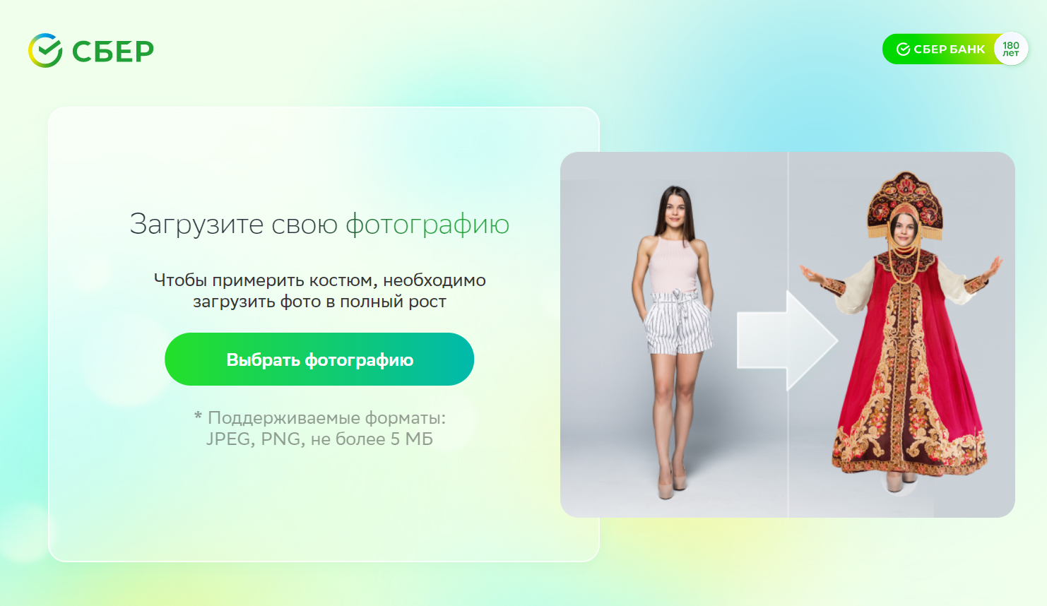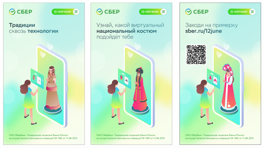 Для создания виртуальной коллекции «Традиции сквозь технологии» SberAR/VRLab, специализарующаяся на дополненной и виртуальной реальности, отсканировала настоящие национальные костюмы. На основе этих сканов были созданы 3D-модели. А с помощью технологии компьютерного зрения и нейронных сетей примерить одежду может любой желающий.