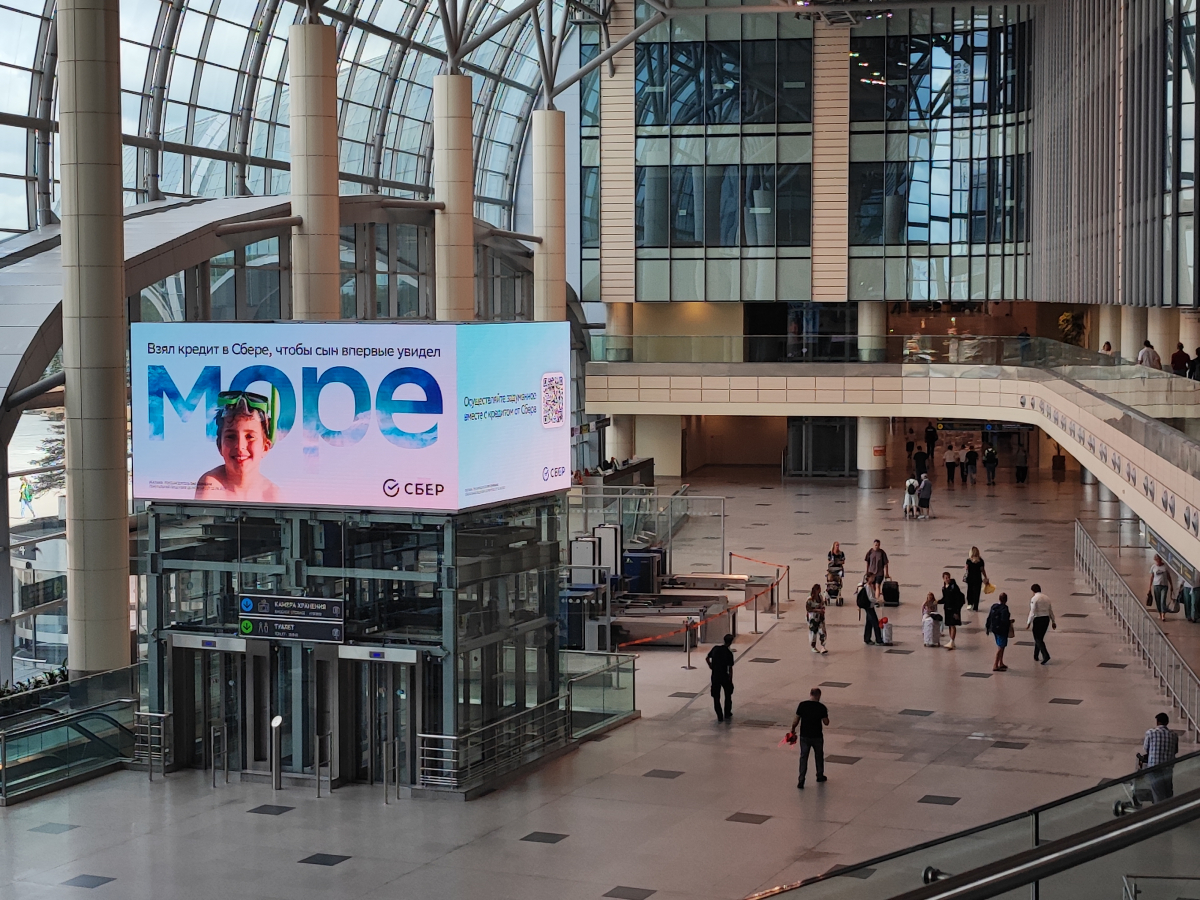 В крупнейших аэропортах страны, от Сочи до Владивостока, «Сбер» разместил рекламу, которая показывает различные направления для отдыха и предлагает инструмент для безотлагательного начала путешествий. Об этом Sostav рассказали представители компании.